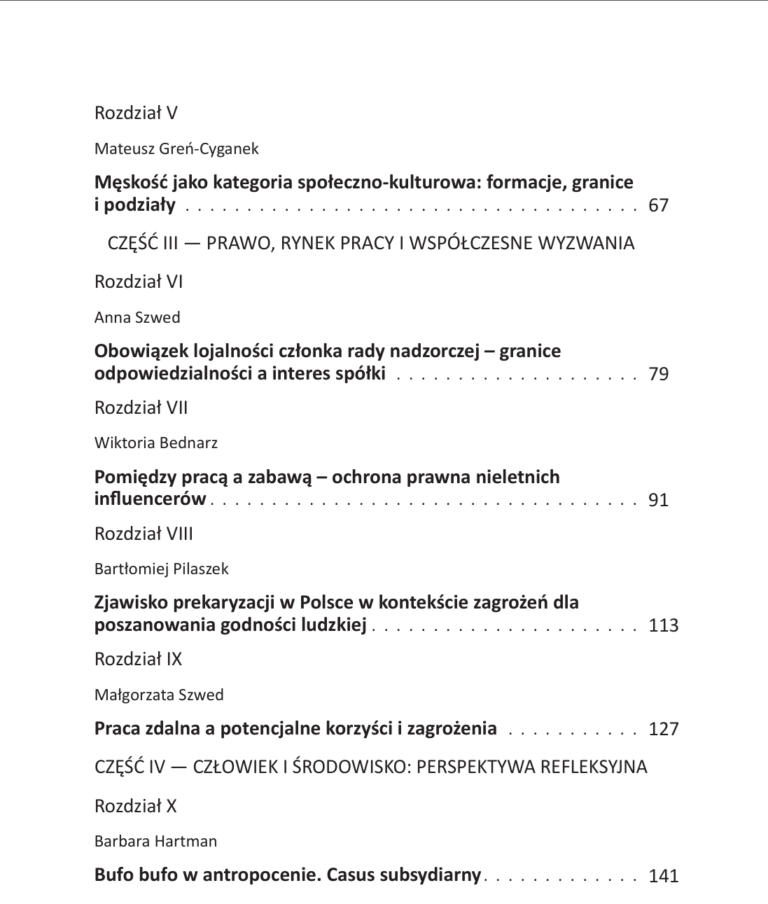 Publikacja ma charakter interdyscyplinarny i podejmuje aktualne zagadnienia z zakresu edukacji, prawa, rynku pracy, kultury oraz ochrony środowiska. Autorzy analizują współczesne procesy społeczne i instytucjonalne, wskazując na wyzwania stojące przed środowiskiem naukowym i praktyką społeczną.